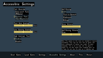 - Accessibility Settings: Added a dedicated accessibility menu featuring TTS (Self-voicing for PC), readable font toggles, high-contrast text, and fine-tuning of font size/line spacing.