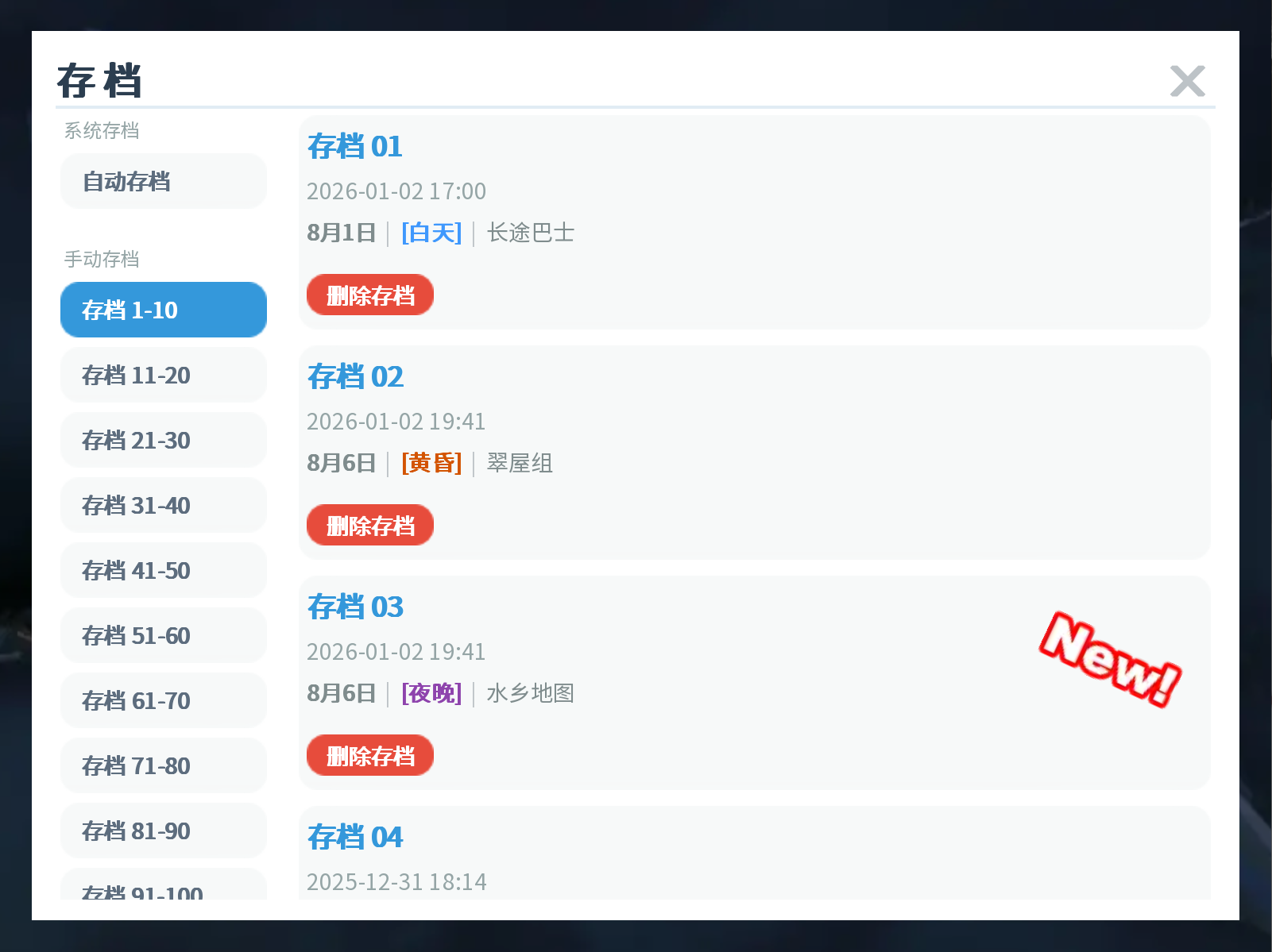 - 英语语言下,存档界面部分翻译丢失。