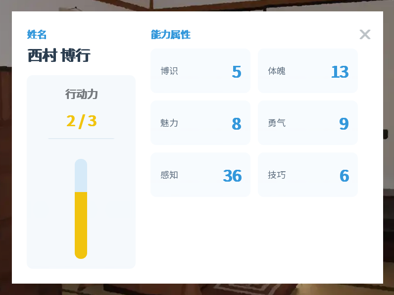 - 引入博识、体魄、勇气、魅力、感知、技巧六大属性。属性不仅影响好感度获取,部分选择的成功率和事件触发,还有不少奇奇怪怪的用处。